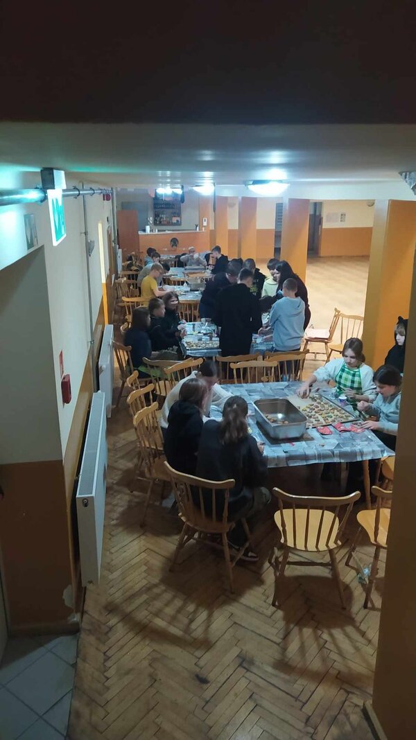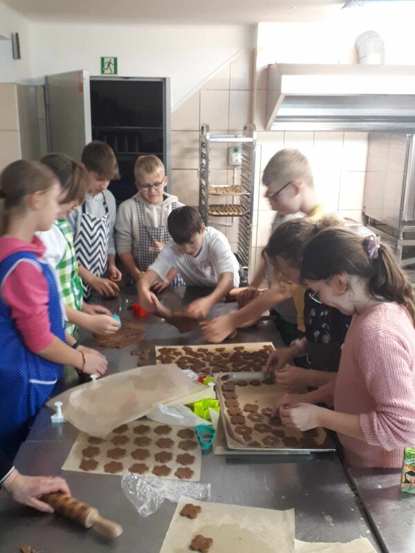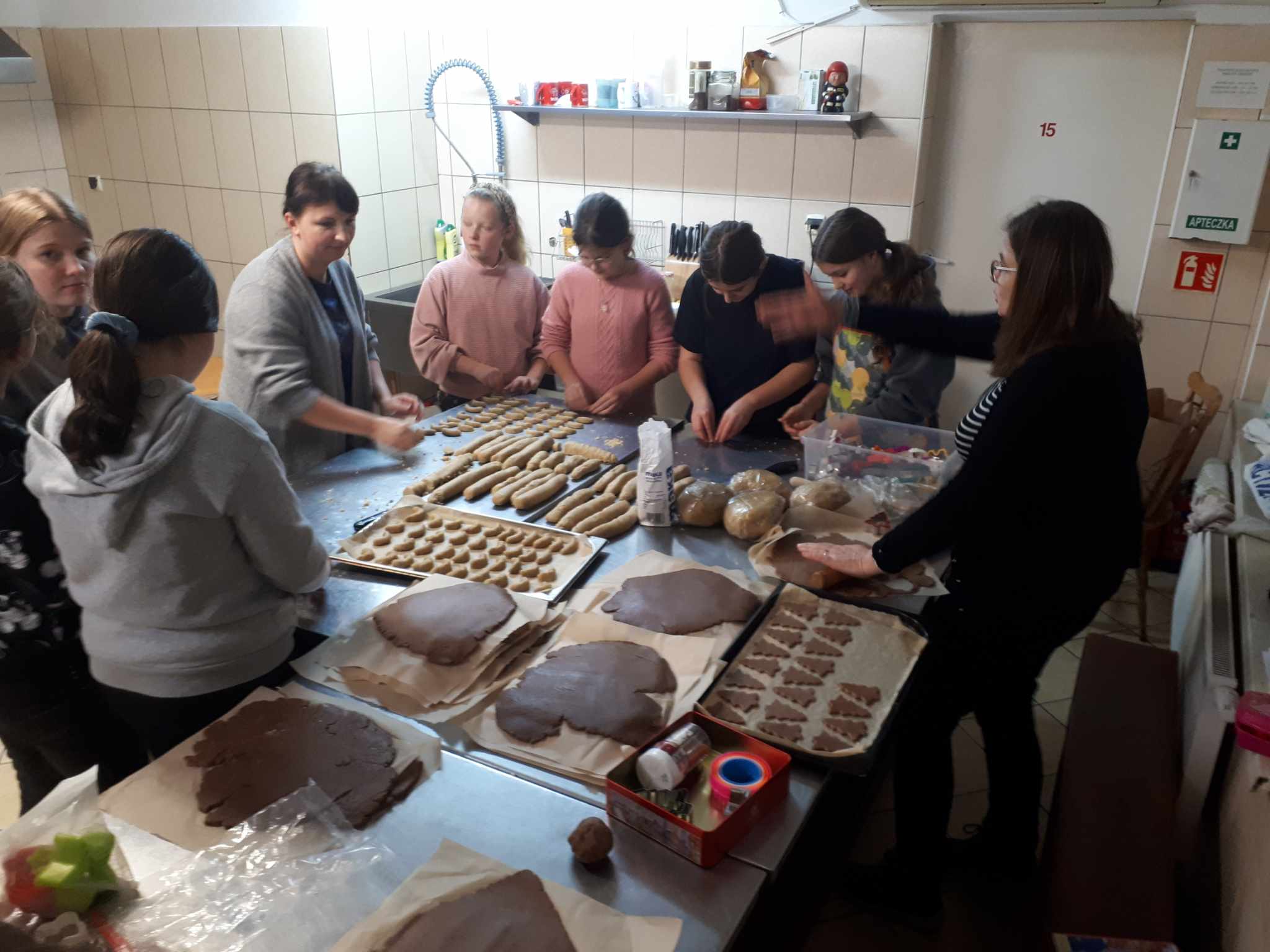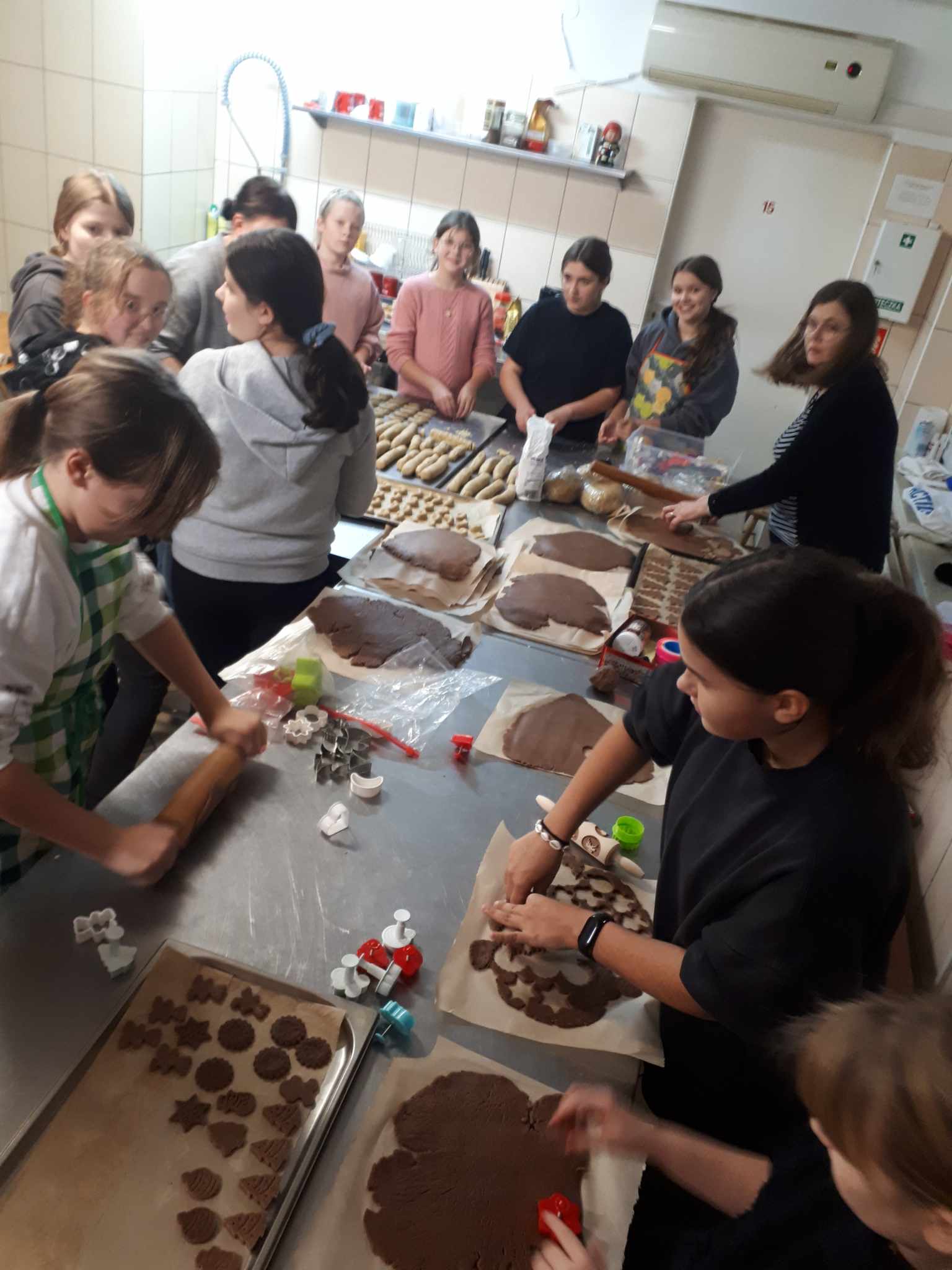 Uczestnicy z wielkim entuzjazmem przystąpili do przygotowania smakowitych pierników. Najpierw wyrabiali i wałkowali ciasto, by potem za pomocą foremek wykrawać różne kształty. Po upieczeniu ciastka trafiały do dekorowania. Lukier i czekoladowa polewa lały się strumieniami. W ruch poszły posypki oraz cukrowe pisaki. Każdy pracował z pełnym zaangażowaniem. Nie zabrakło także degustacji świątecznych wypieków.