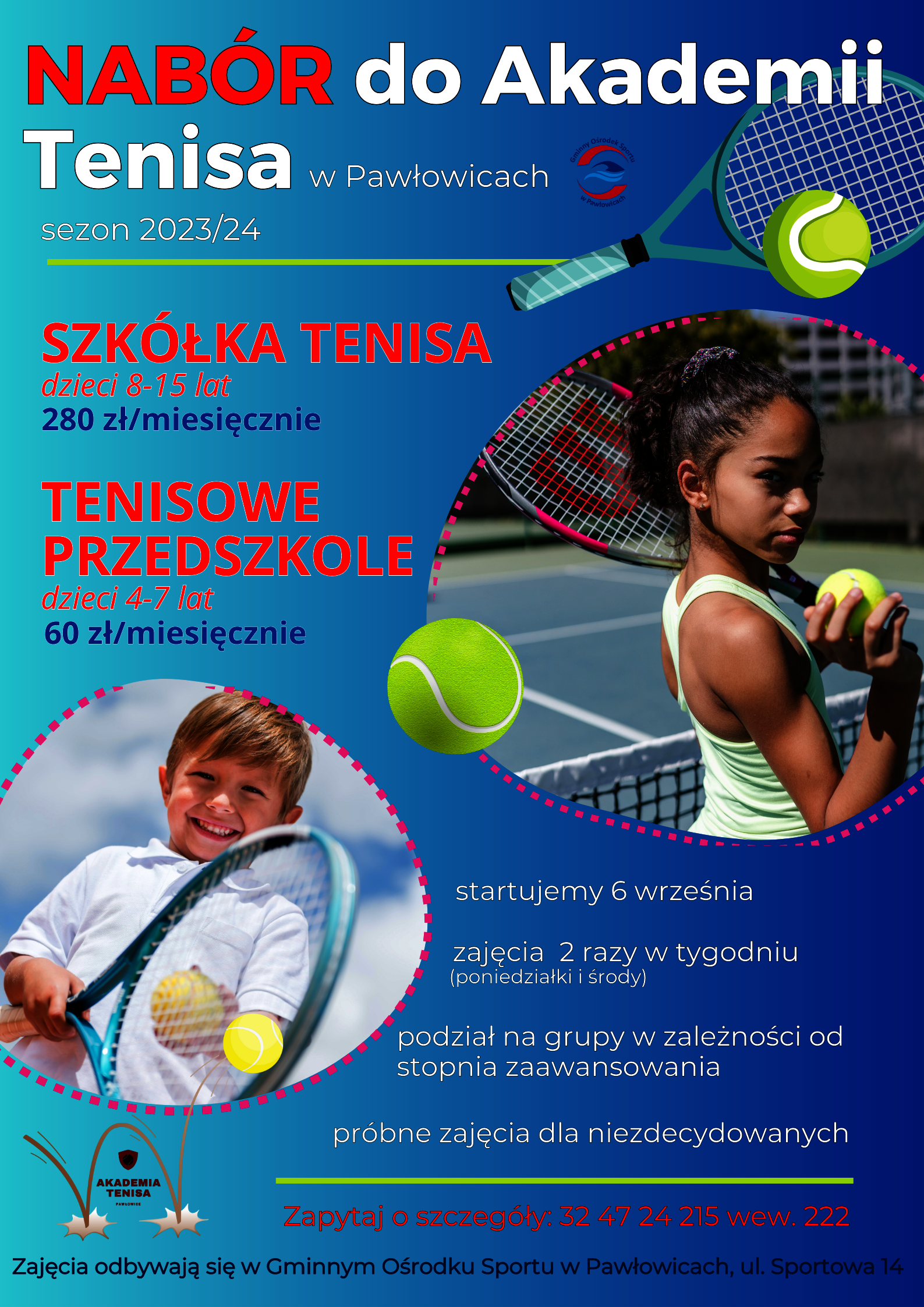 koszt zajęć 280 zł/miesięcznie – zajęcia dla dzieci szkolnych 60-minutowe 2 razy w tygodniu, poniedziałki i środy (w przypadku rodzeństwa każde