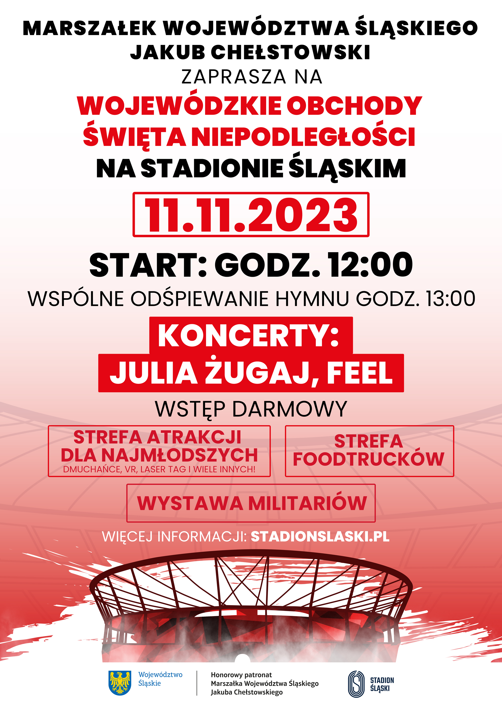 Narodowe Święto Niepodległości można świętować również na Stadionie Śląskim w Chorzowie w ramach wydarzeń organizowanych przez Województwo Śląskie: