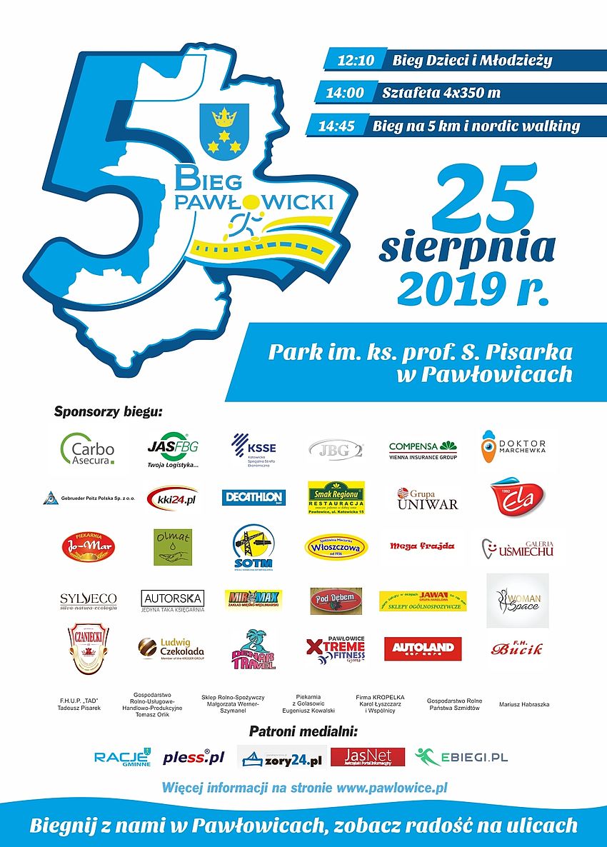 Już w najbliższą niedzielę, 25 sierpnia, spotykamy się po raz piąty w Parku ks. prof. Stanisława Pisarka, aby wziąć udział w sportowej imprezie dla wszystkich – Biegu Pawłowickim.