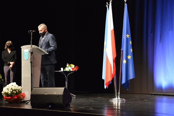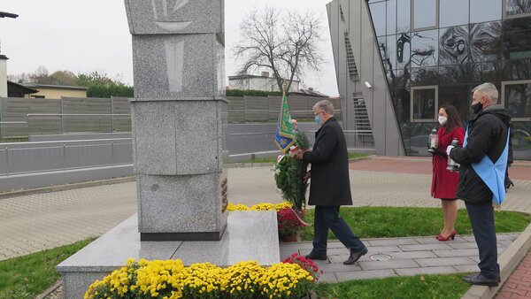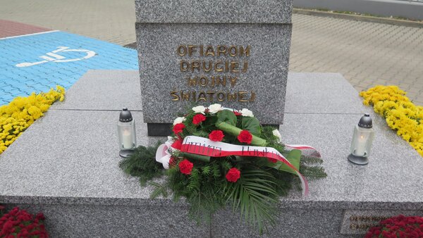 Przed spotkaniem w Centrum Kultury, delegacja samorządowa w osobach wójta Franciszka Dziendziela, Przewodniczącego Rady Gminy Pawłowice Damiana Hermana i zastępcy wójta Joanny Śmieji, w obecności gminnego sztandaru złożyła kwiaty i zapaliła znicze przy Pomniku Ofiar Drugiej Wojny Światowej.