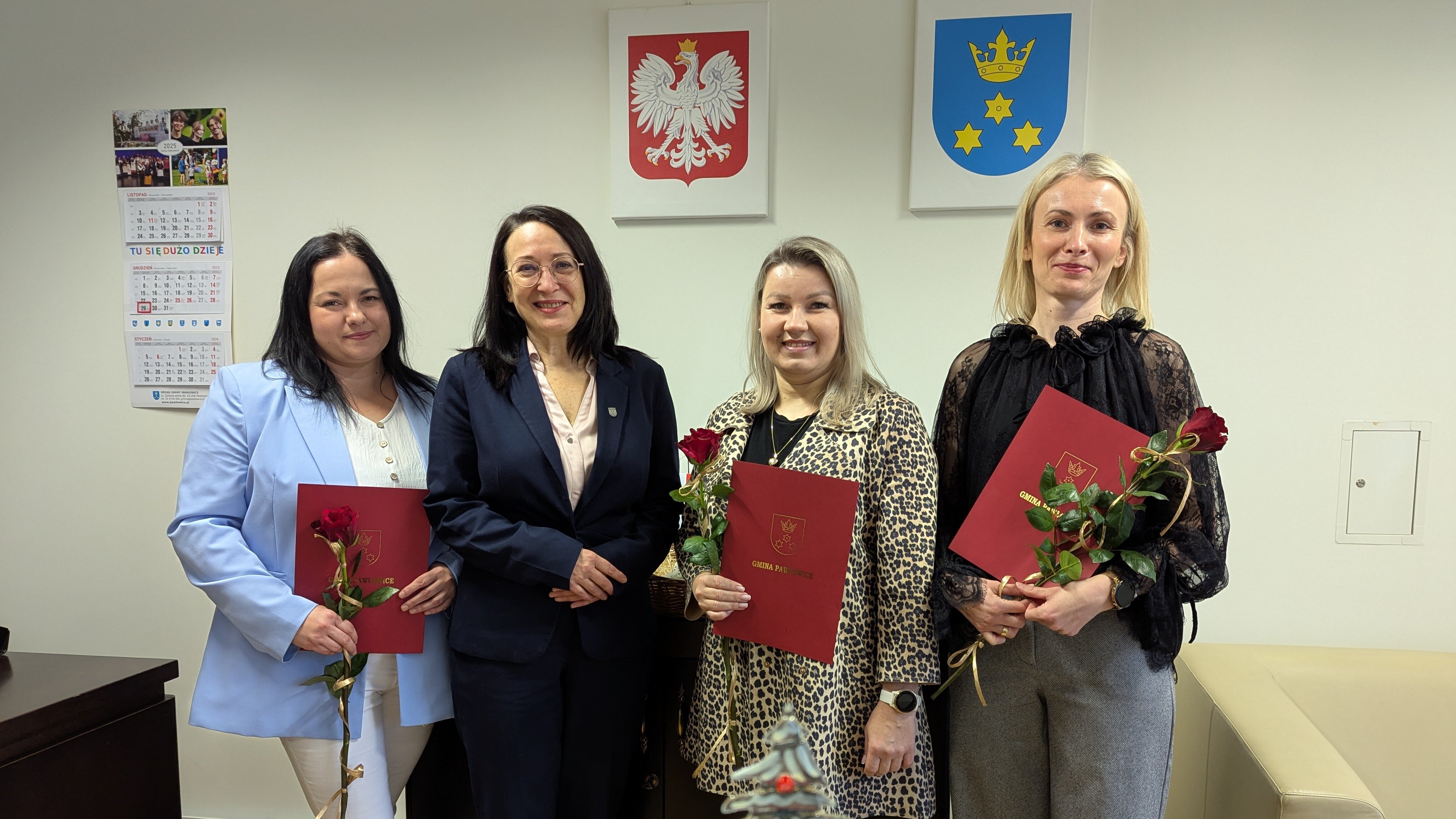 W Urzędzie Gminy, 29 grudnia 2025 r. odbyło się wręczenie aktów nadania stopnia nauczyciela mianowanego. Awanse nauczycielom wręczyła Wójt Gminy Joanna Śmieja, składając jednocześnie gratulacje oraz wyrazy uznania za zaangażowanie i codzienną pracę na rzecz edukacji dzieci i młodzieży. Nauczyciele złożyli ślubowanie, zobowiązując się do rzetelnego i odpowiedzialnego wykonywania obowiązków zawodowych oraz pracy na rzecz dobra uczniów.