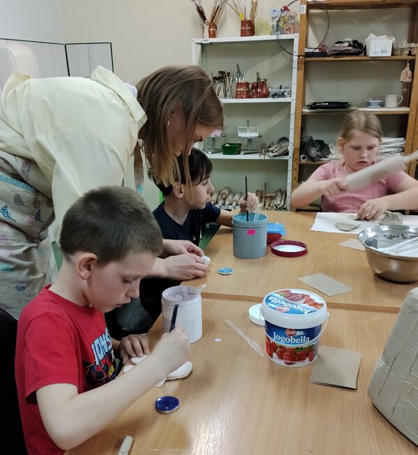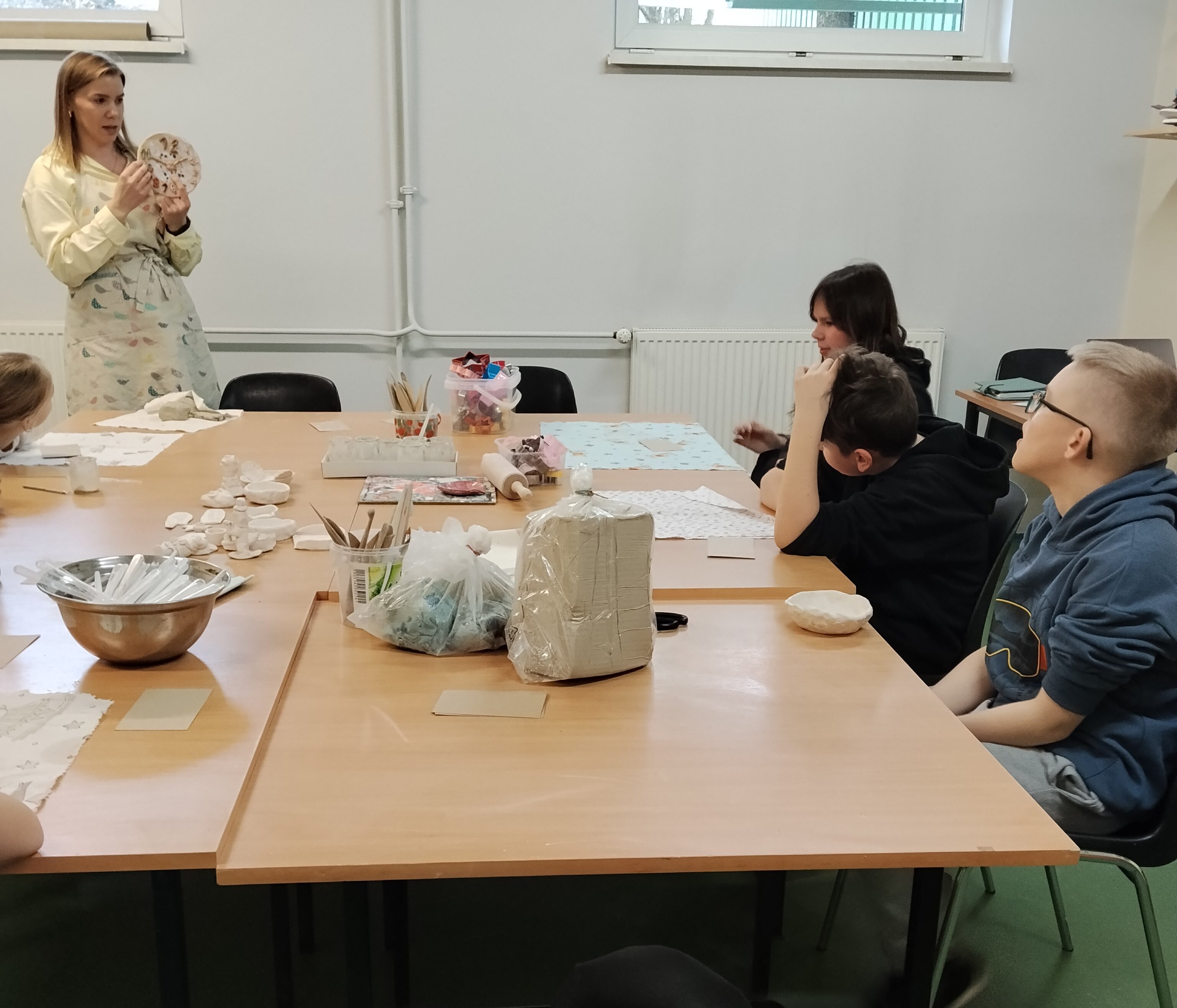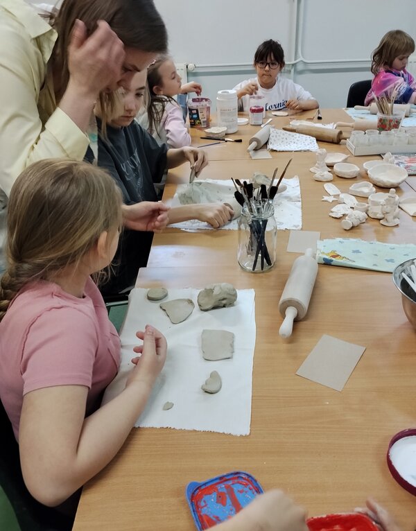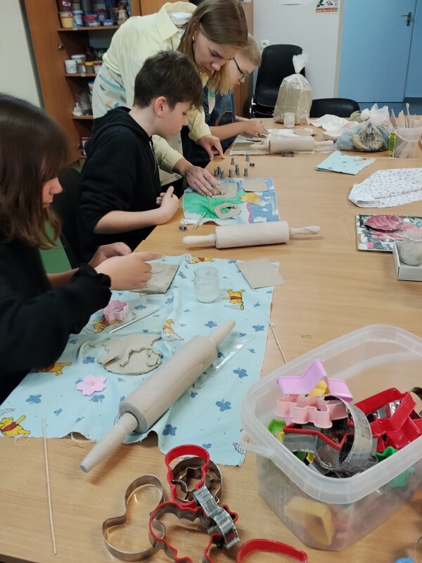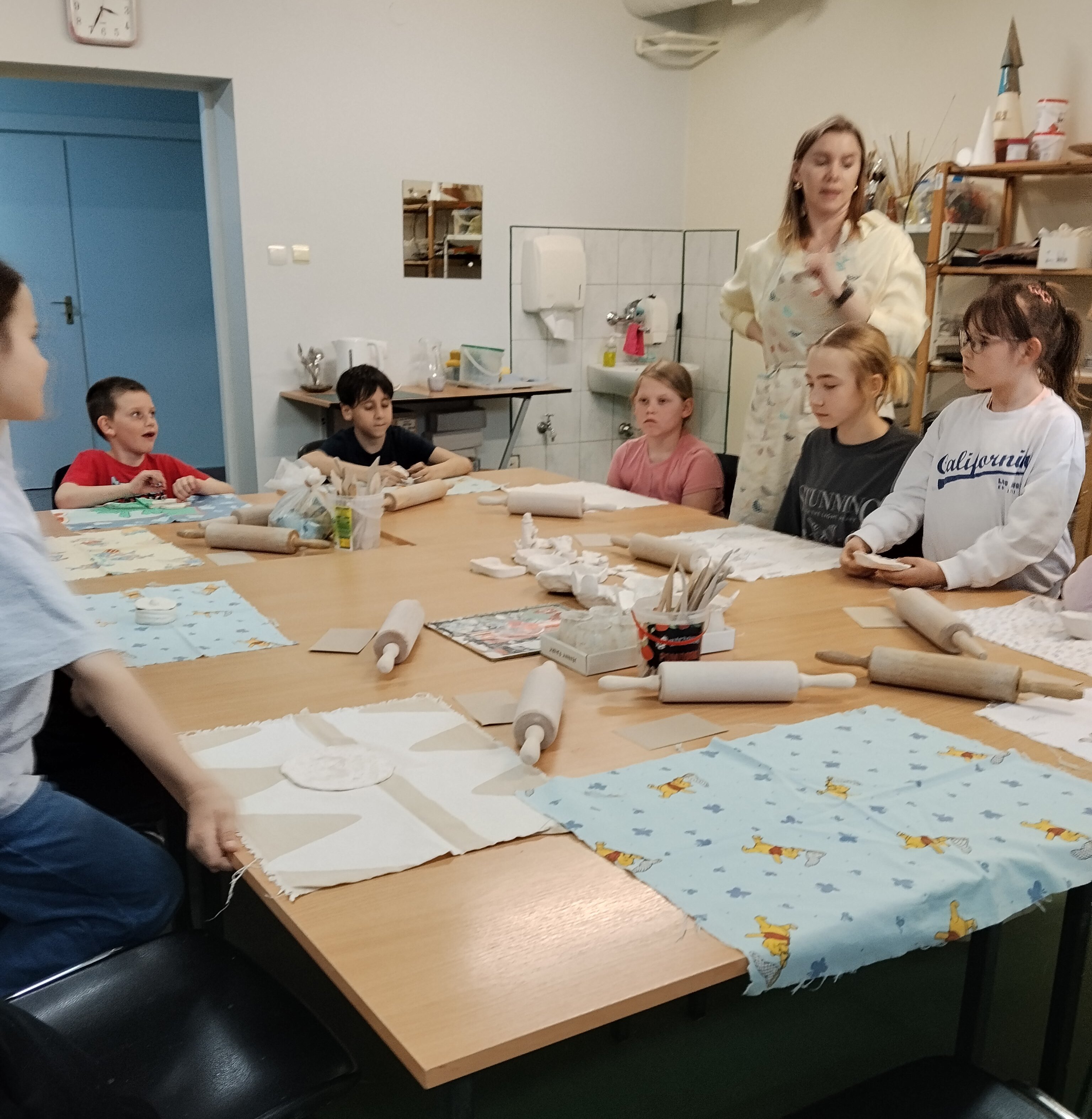 Kolejne warsztaty ceramiczne za nami. 13 kwietnia dzieci miały okazję uczestniczyć w czwartych warsztatach ceramicznych. Tym razem część dzieci szkliwiła swoje ozdoby. Te dzieci które były po raz pierwszy, próbowały swoich sił w lepieniu i pieczątkami odbijały swoje imiona. Ceramika cieszy się ogromnym zainteresowaniem dzieci, bo to bardzo ciekawe i rozwijające zajęcia.
