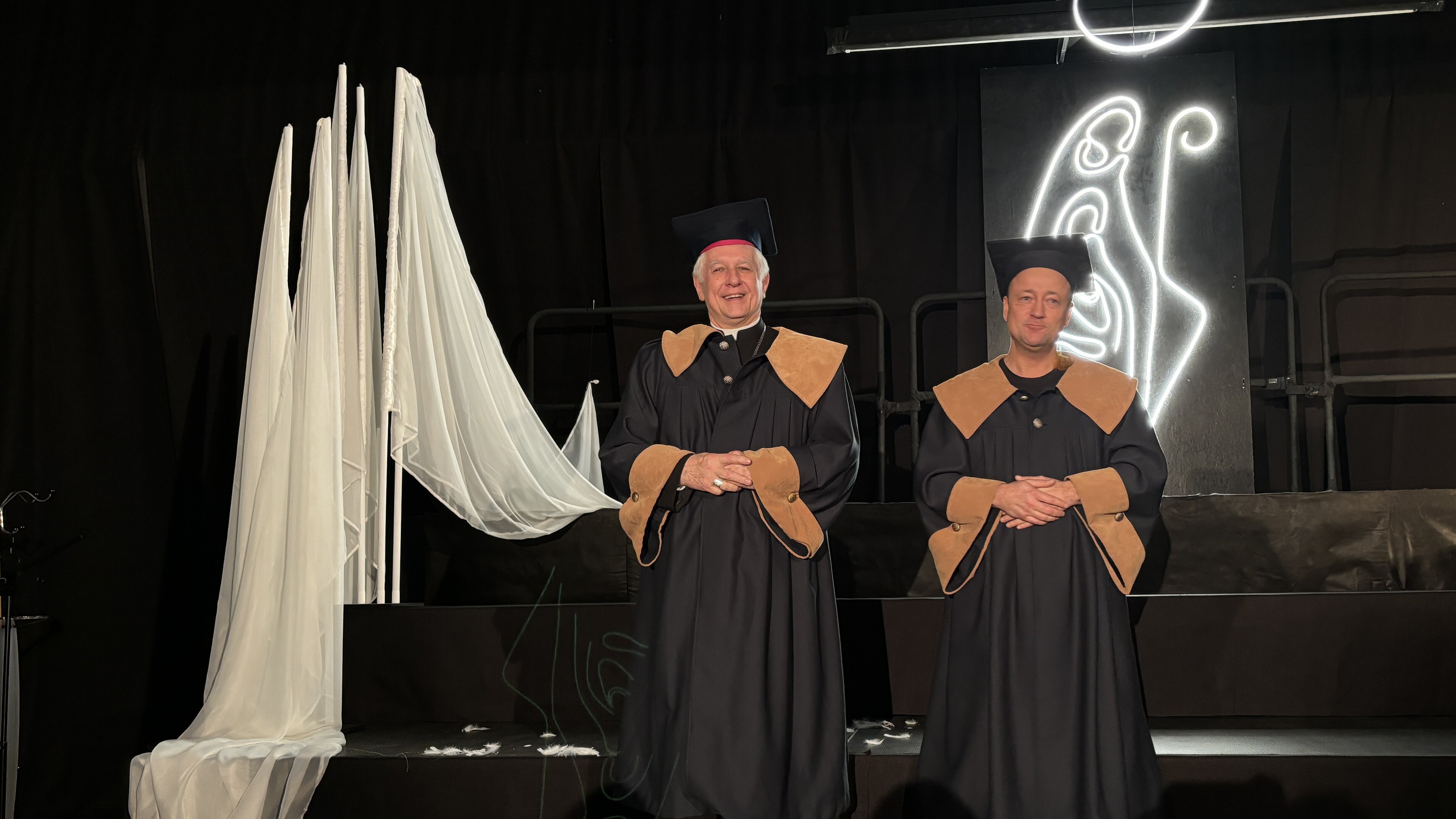 Biskup Marek Szkudło drugi laureat tytułu Honorowego Profesora Szkoły, to kapłan od lat związany z archidiecezją katowicką. Święcenia biskupie przyjął w 2015 roku. Znany jest ze swojej duszpasterskiej pracy m.in. wśród harcerzy oraz górników. Odnosząc się do młodych ludzi, akcentował znaczenie życiowej misji, wytrwałości oraz gotowości do odkrywania własnych talentów. Wskazywał też na potrzebę wzajemnej obecności i umiejętności dostrzegania dobra w codzienności.