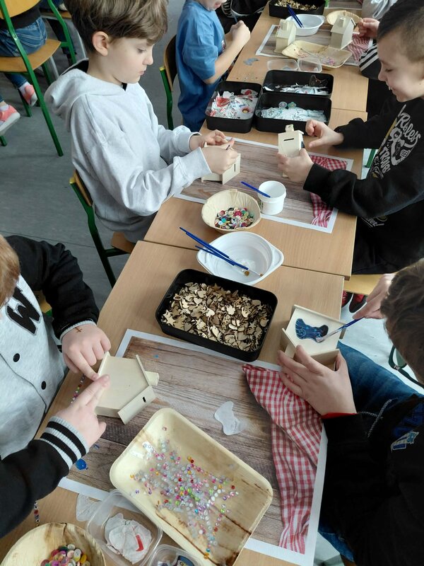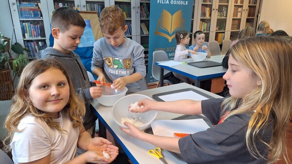 Równie inspirujące zajęcia odbywają się w Gminnej Bibliotece Publicznej i jej filiach. W Warszowicach dzieci tworzyły lampki biurkowe, ozdabiały drewniane skarbonki oraz uczestniczyły w warsztatach sensoceramiki. Był także czas na zimowe spacery i leśne warsztaty badawcze. W Filii Osiedle odbyły się warsztaty szycia poduszek, zajęcia eksperymentalne z tworzenia „śniegu” oraz spotkanie z KinoSzkołą inspirowane światem „Akademii pana Kleksa”. Każde z tych działań rozwijało kreatywność, wyobraźnię i zdolności manualne uczestników.