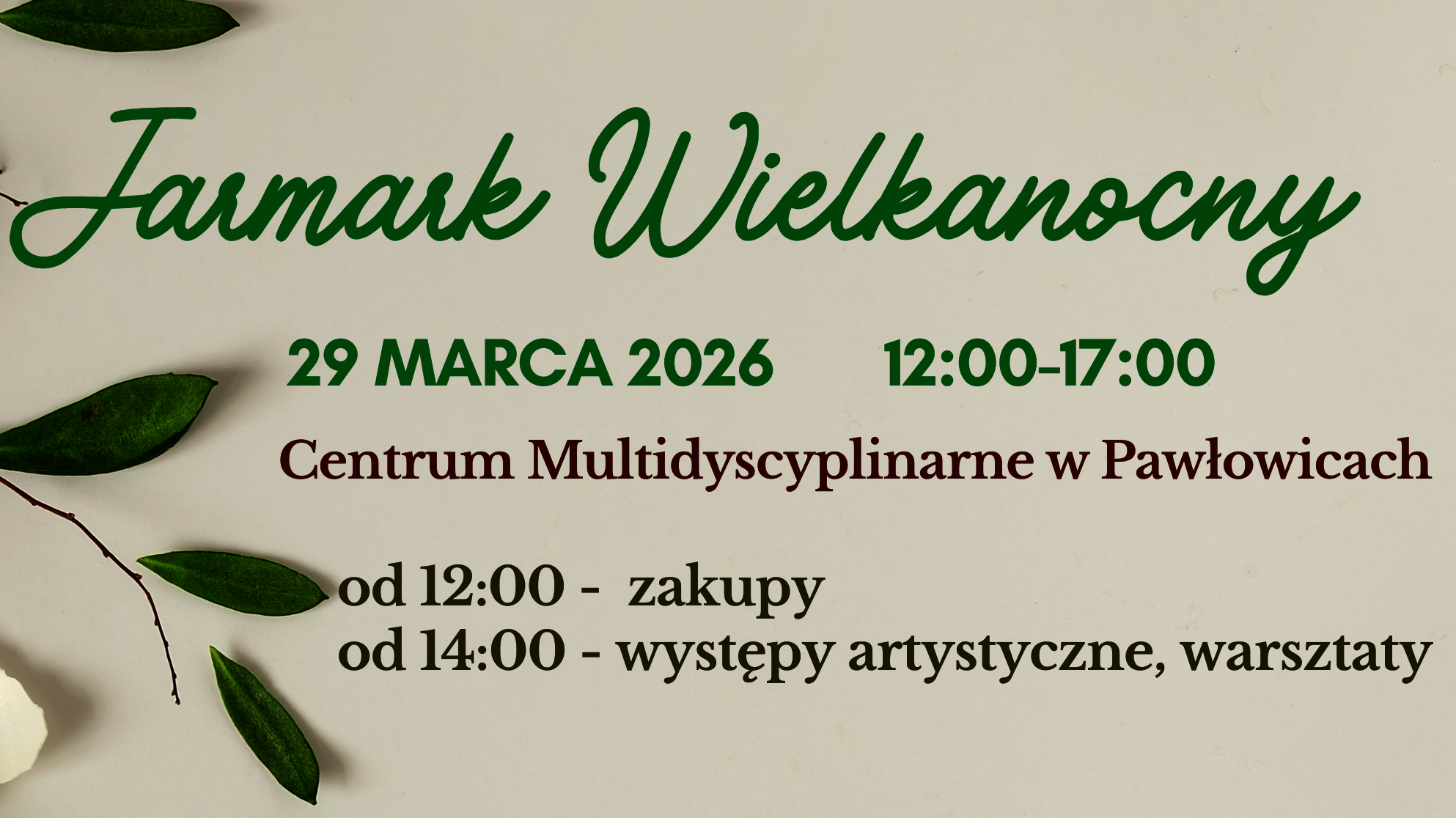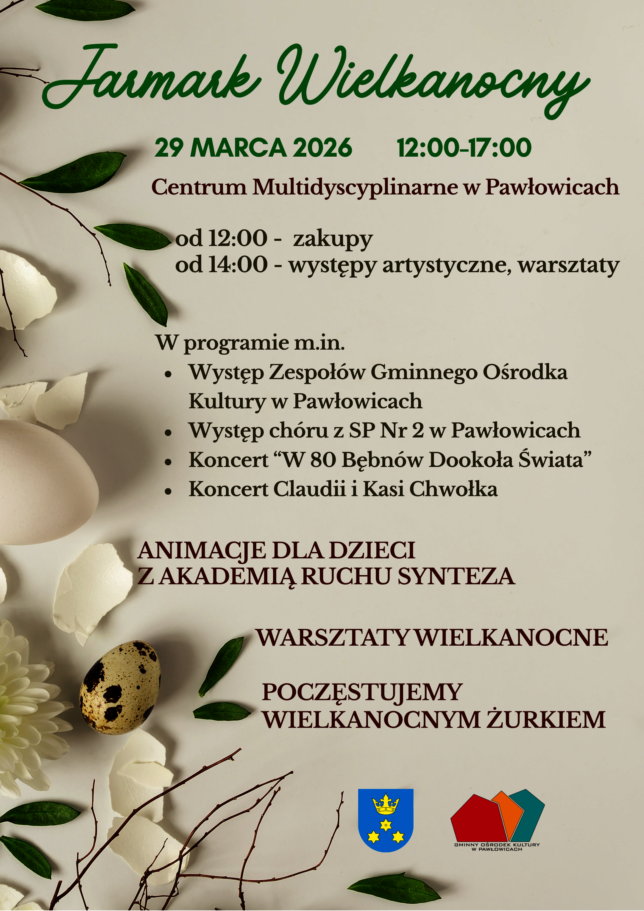 W godzinach od 12:00 do 17:00 Centrum Multidyscyplinarne wypełni się wielkanocnym klimatem – będzie można zrobić przedświąteczne zakupy, znaleźć rękodzieło i lokalne produkty oraz spędzić czas w swobodnej i serdecznej atmosferze.