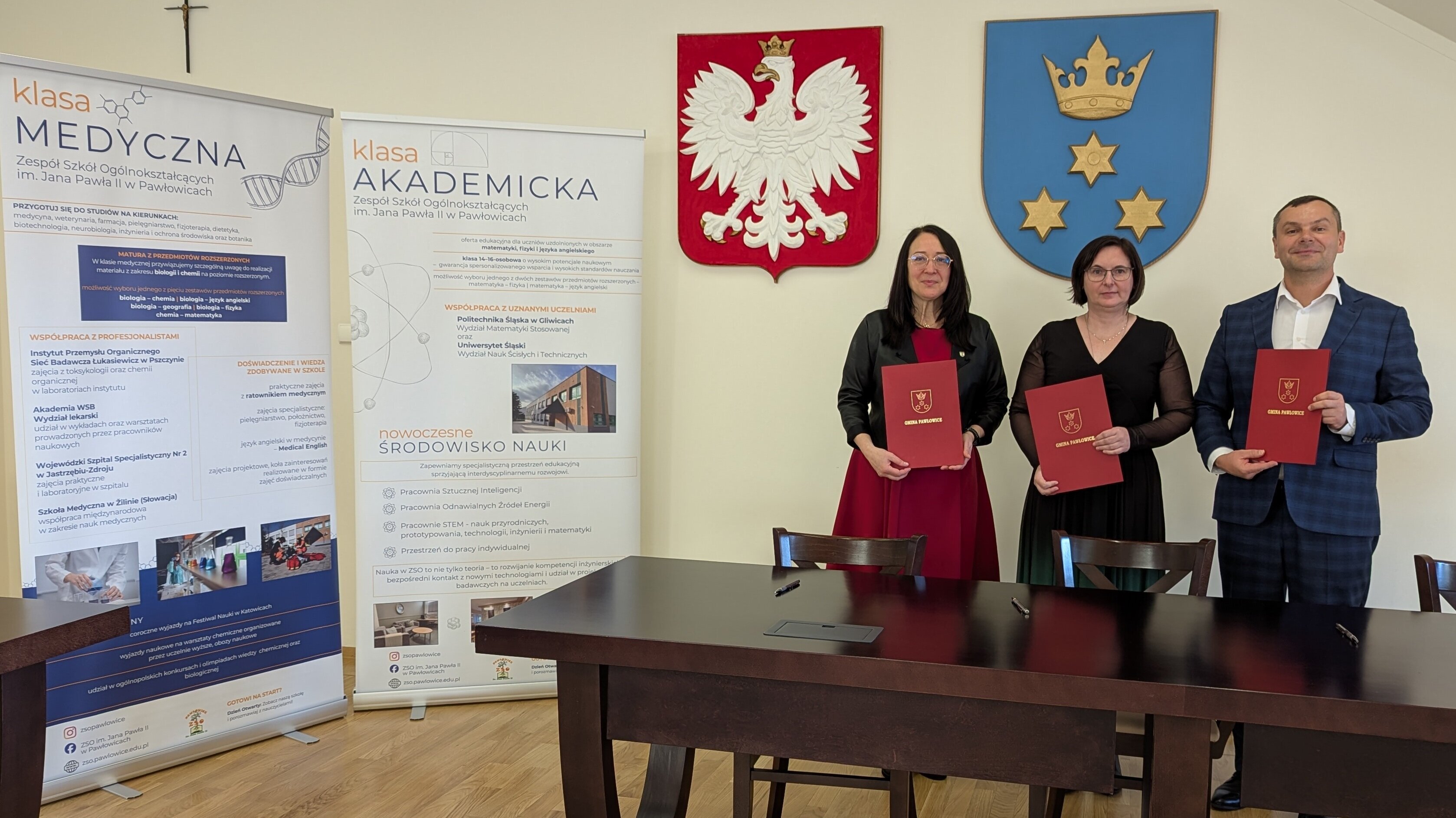 W imieniu Gminy Pawłowice dokumenty podpisała wójt Joanna Śmieja, Zespół Szkół Ogólnokształcących im. Jana Pawła II w Pawłowicach reprezentował dyrektor Andrzej Wowra, z ramienia Uniwersytetu Śląskiego porozumienie podpisała dr Marta Chmielewska – Pełnomocniczka Rektora ds. współpracy ze szkołami, Politechnikę Śląską reprezentował prof. dr hab. inż. Marcin Woźniak Dziekan Wydziału Matematyki Stosowanej, natomiast Sieć Badawczą Łukasiewicza - Lucyna Kowalczyk Kierownik Oddziału Instytut Przemysłu Organicznego.