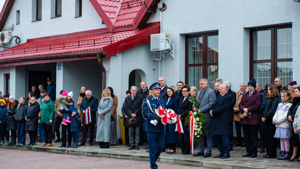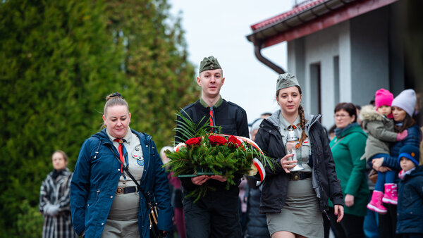 Pod pomnikiem złożono biało-czerwone kwiaty i zapalono znicze, oddając hołd tym, którzy poświęcili swoje życie w walce o niepodległość.
