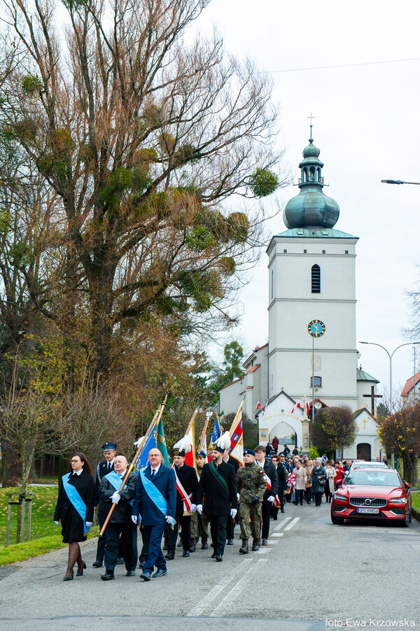 Na czele kolumny szła Orkiestra Dęta KWK Pniówek pod batutą Józefa Klimurczyka, za nią harcerze, poczty sztandarowe, przedstawiciele gminnego i powiatowego samorządu, radni, sołtysi i mieszkańcy gminy.