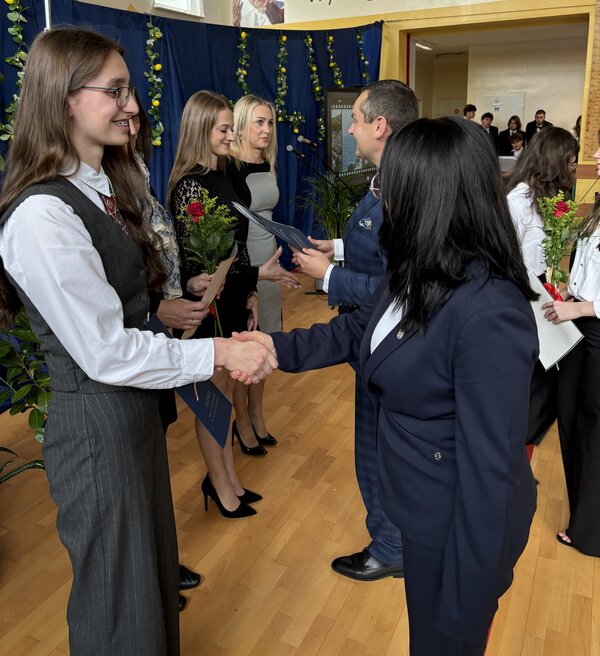 W uroczystości uczestniczyła między innymi Wójt Gminy Pawłowice, Joanna Śmieja, która wraz z Dyrektorem szkoły, Andrzejem Wowrą, wręczyła świadectwa i wyróżenienia uczniom osiągającym najwyższe wyniki w nauce. W swoim wystąpieniu Pani Wójt skierowała do młodzieży słowa wsparcia i motywacji, podkreślając, że wybór dalszej drogi życiowej bywa wyzwaniem, dlatego warto kierować się własnymi pasjami i nie ulegać presji otoczenia. Życzyła również absolwentom powodzenia na egzaminie maturalnym.