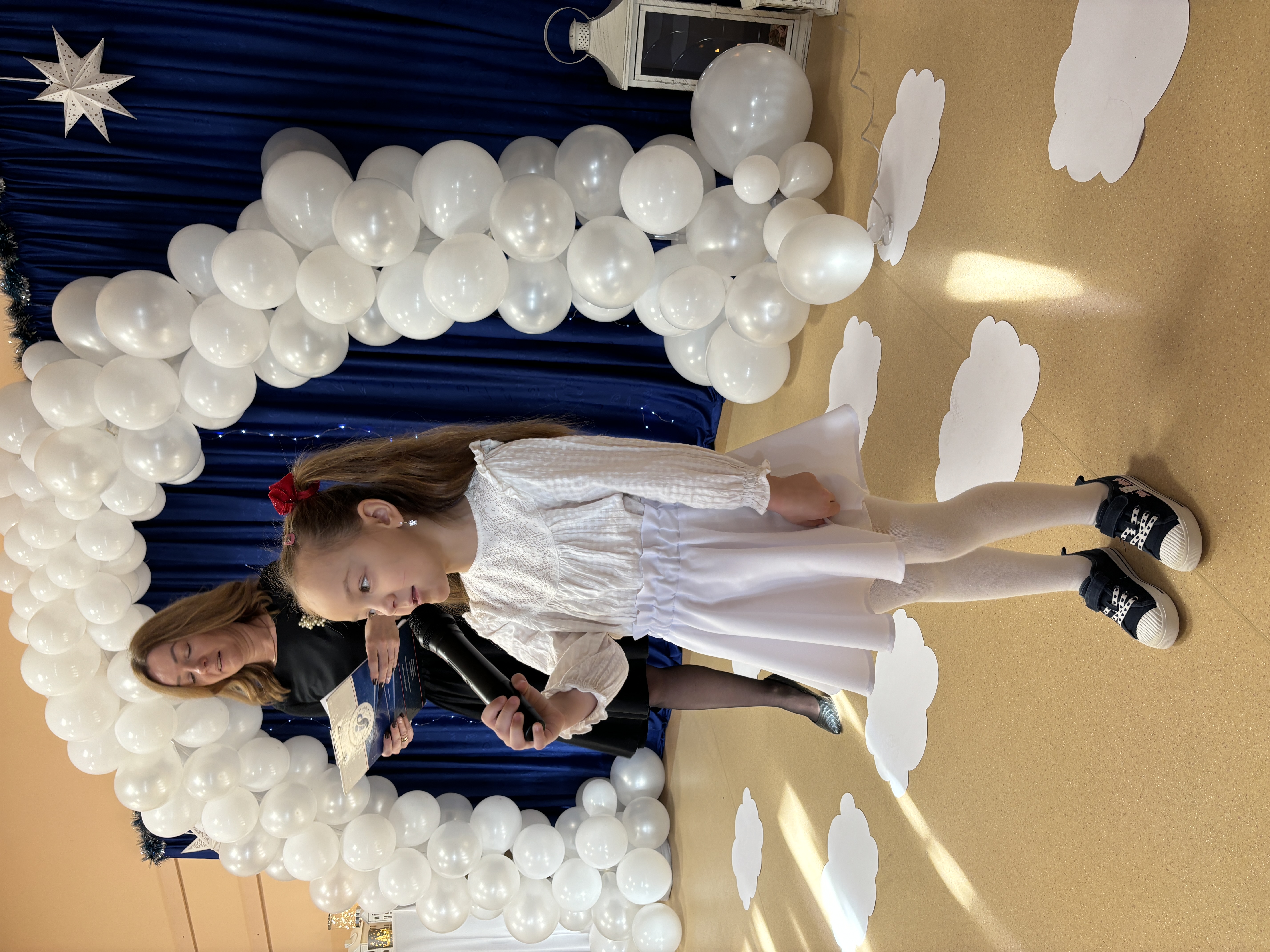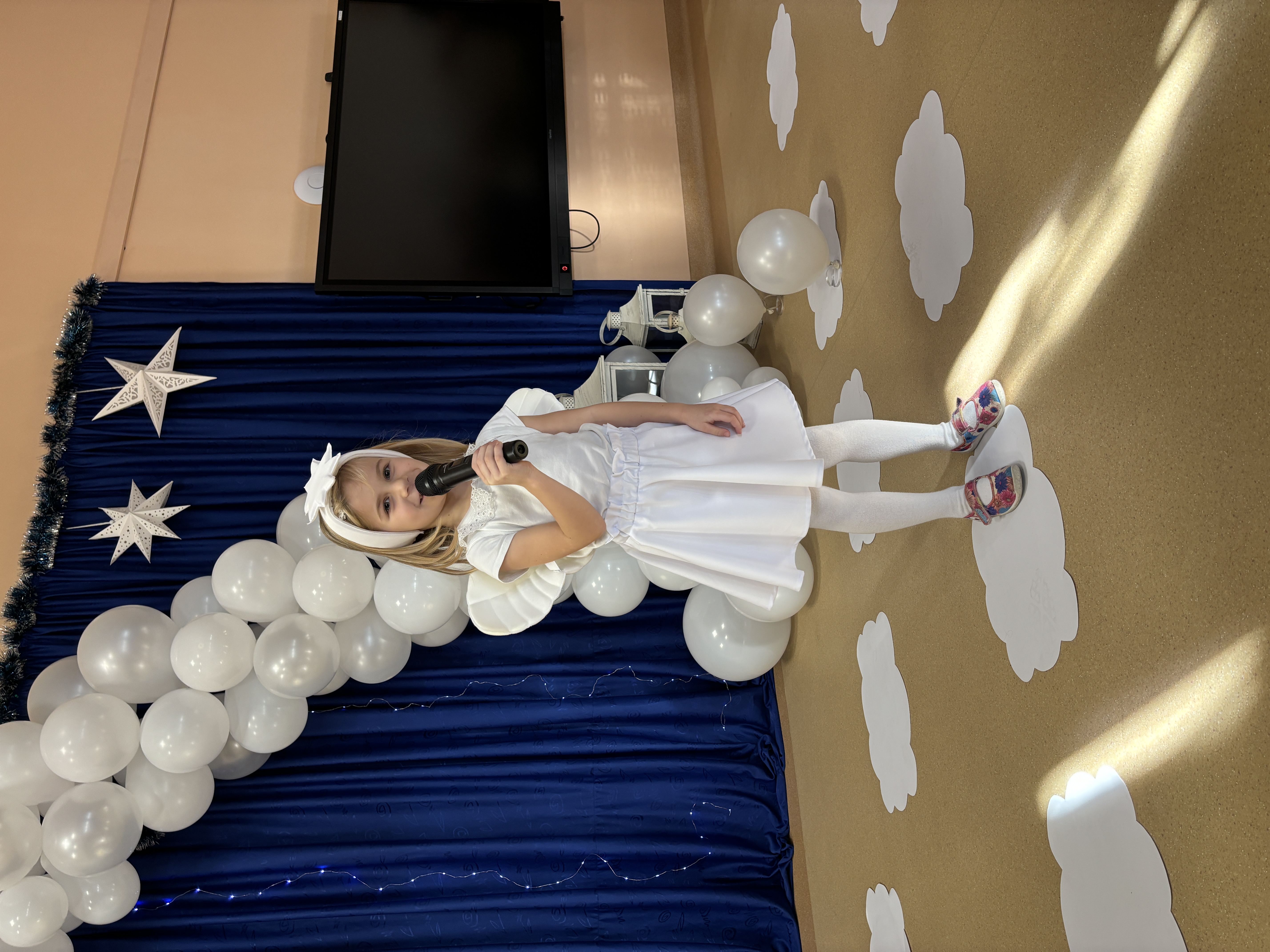 Podczas uroczystości absolwenci przedszkola zaprezentowali swoje talenty muzyczne grając na flecie poprzecznym, skrzypcach, trąbce oraz instrumentach klawiszowych. Przedszkolaki pod okiem nauczycielek wystąpiły z pięknym programem świątecznym przygotowanym specjalnie na tę okazję. Na zakończenie mali artyści przekazali gościom serdeczne życzenia i obdarowali ich upominkami - drewanianą choinką z jubileuszową bombką.