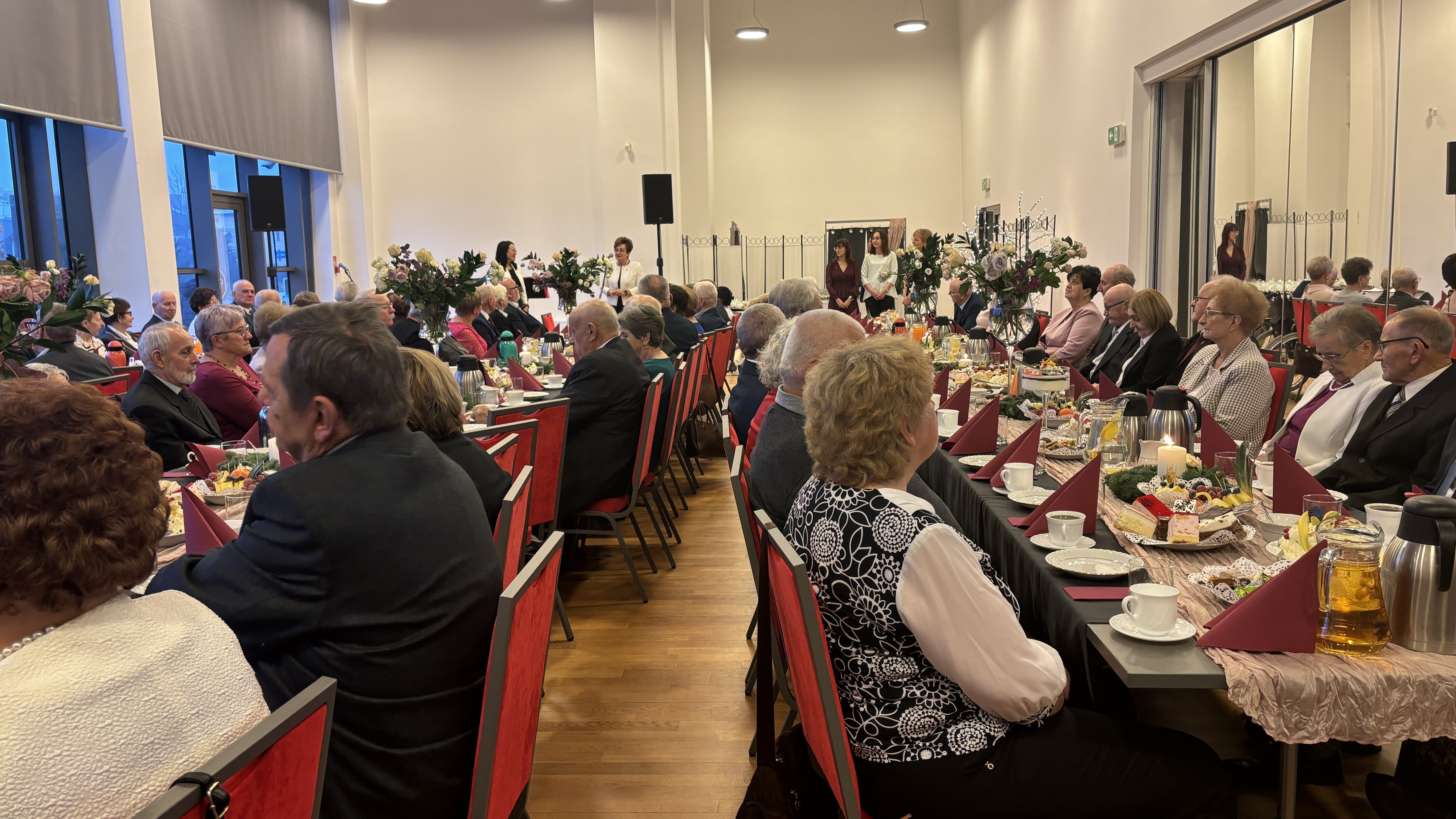 Małżeństwa z gminy Pawłowice, które w 2025 roku świętowały okrągłe jubileusze, 3 grudnia 2025 r. na zaproszenie wójta Joanny Śmiei spotkały się w pawłowickim Centrum Kultury.
