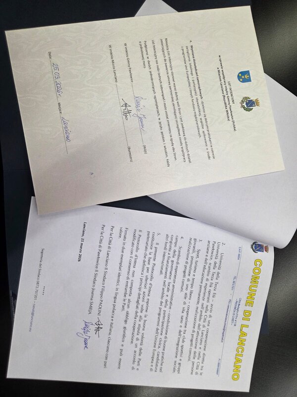 Podpisanie listu intencyjnego to wstęp do nawiązania trwałego partnerstwa pomiędzy Pawłowicami i Lanciano. Mamy nadzieję, że już wkrótce będziemy mogli gościć naszych włoskich przyjaciół w gminie Pawłowice.