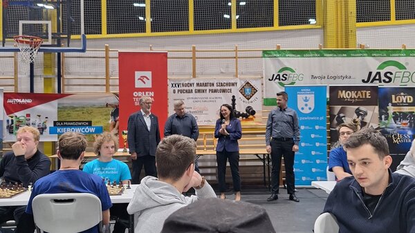 XXVI Nocny Maraton Szachowy uroczyście otworzyła Wójt Gminy Pawłowice Joanna Śmieja, która życzyła zawodnikom powodzenia i wykonała pierwszy ruch na szachownicy, dając tym samym sygnał do rozpoczęcia rozgrywek.